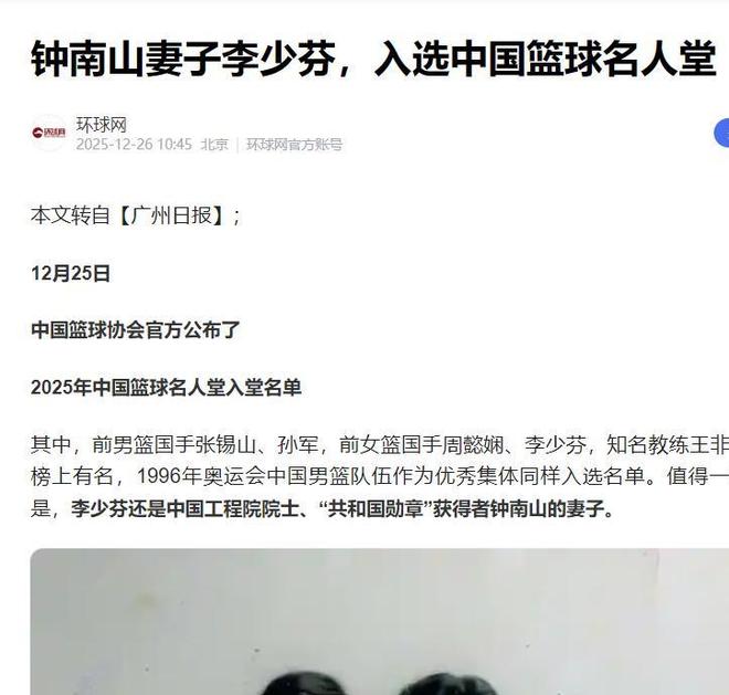 信息來源:鐘南山妻子李少芬,入選中國籃球名人堂
