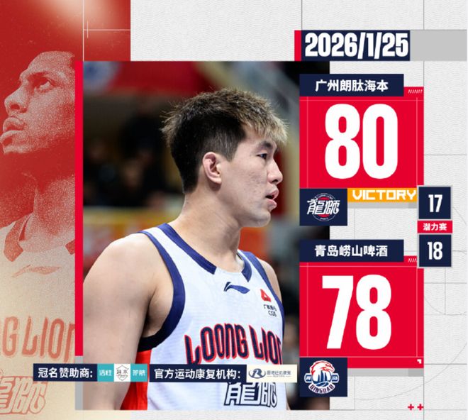 一番激戰(zhàn)之后,廣州龍獅男籃以80比78險(xiǎn)勝青島男籃,從這個(gè)客場(chǎng)全身而退。