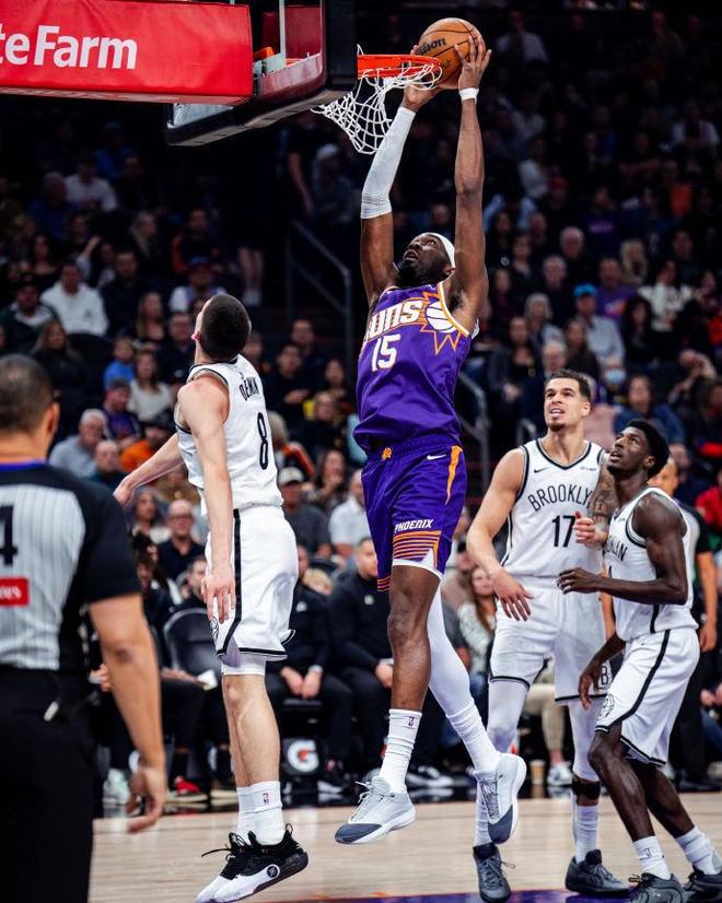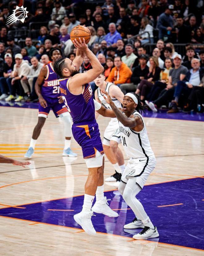 太陽過去兩場連輸老鷹與熱火遭遇2連敗,籃網(wǎng)過去5場遭遇5連敗,本賽季首次交鋒太陽客場126-117戰(zhàn)勝籃網(wǎng)。本場太陽缺少布克、杰倫-格林與吉萊斯皮,籃網(wǎng)缺少馬丁、海史密斯與克洛尼。首節(jié)前半節(jié)雙方持續(xù)交替領先,纏斗至太陽15-14領先,太陽一波8-0攻勢擴大9分優(yōu)勢。籃網(wǎng)回敬一波15-5攻勢反超比分,狄龍一度被吹罰一級惡意犯規(guī),首節(jié)結(jié)束太陽28-29落后籃網(wǎng)。首節(jié)籃網(wǎng)23中13,其中三分4中1,波特7中6得到12分;太陽24中13,其中三分6中1,馬威7中5得到10分與狄龍7分。