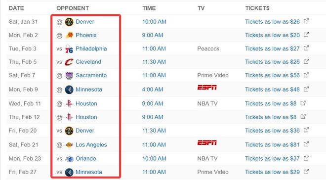 但快船還有一道坎兒那就是接下來的12場比賽,大家能看到除了2月7日VS國王之外,快船分別要打:掘金(2)、太陽、費城、騎士、森林狼(2)、火箭(2)、湖人、魔術(shù),如果這12場比賽快船能拿下其中一半的勝利,那么接下來快船的賽程會非常容易。