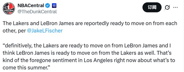 北京時(shí)間2月3日,據(jù)名記Fischer報(bào)道,湖人已經(jīng)準(zhǔn)備好與勒布朗-詹姆斯分道揚(yáng)鑣,詹姆斯也準(zhǔn)備好離開湖人隊(duì)了。這幾乎是目前洛杉磯對于今年夏天即將發(fā)生的事情的普遍看法。