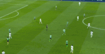 這一次隊友的直塞球被貝蒂斯球員攔截了一下,不過貢薩洛還是很快向前跑,甚至在進禁區(qū)之前,還有一個停頓后突然啟動的鏡頭,很好地帶走了防守人的注意力。