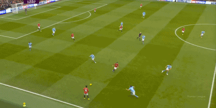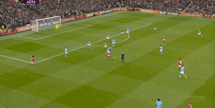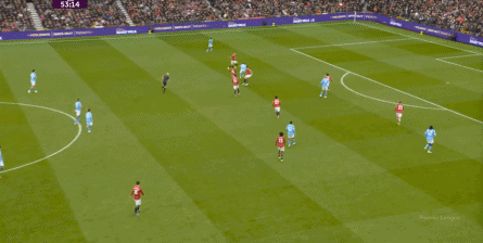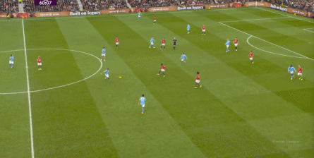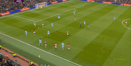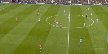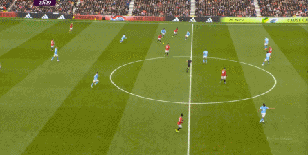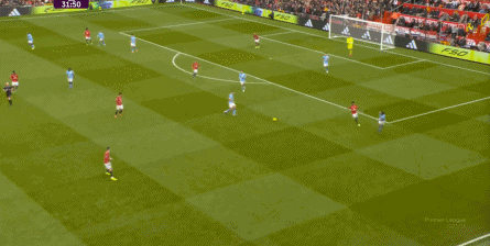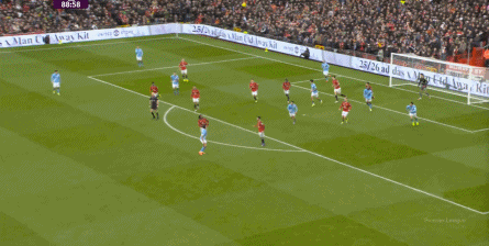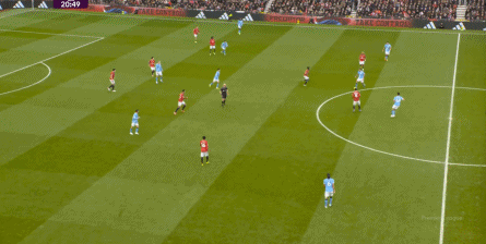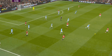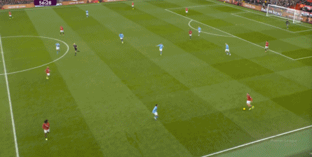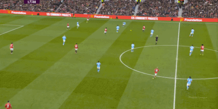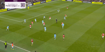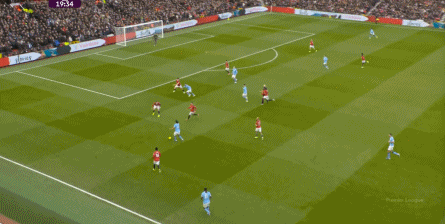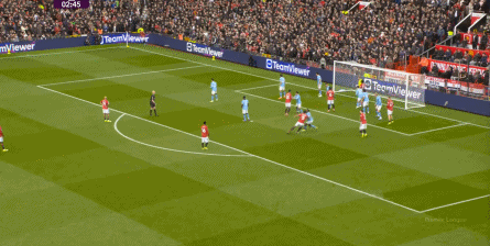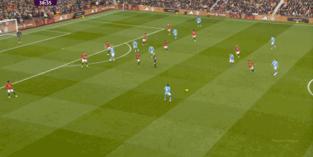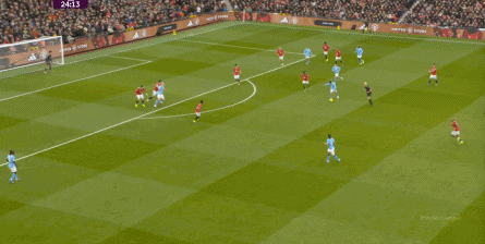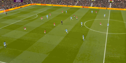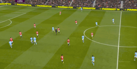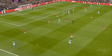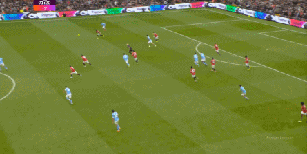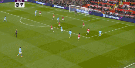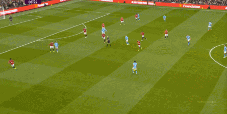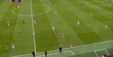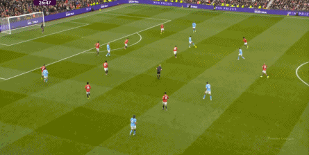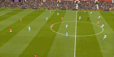 比如曼城曾在前場完成逼搶,讓曼聯(lián)需要在人員不整的情況下緊急防守: