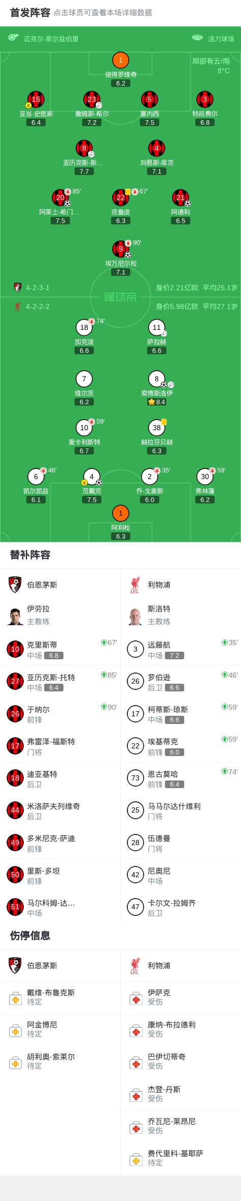 劍南春|利物浦2-3伯恩茅斯,范戴克破門,索博斯洛伊傳射