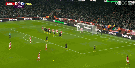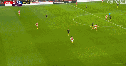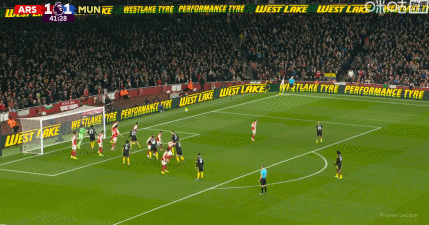 第41分鐘,阿森納快速反擊,最后傳中給大了