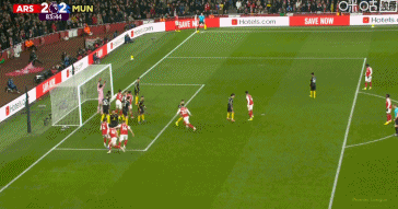 第81分鐘,薩卡傳中,皮球砸到哲凱賴什肩膀高出橫梁