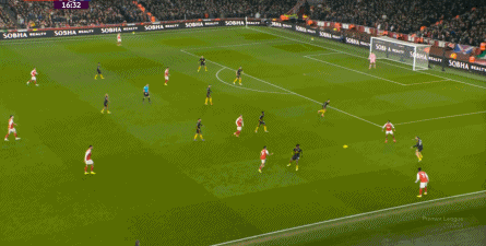 那就是他對(duì)于阿森納雙中場(chǎng)和雙后衛(wèi)之間的空間,也就是“洞”的精準(zhǔn)利用。